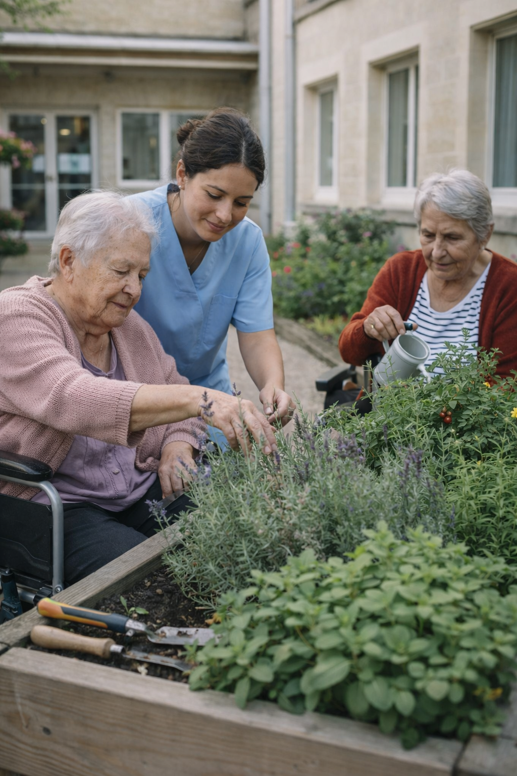Pour le secteur médico-social, nous concevons des espaces végétalisés inclusifs et thérapeutiques qui favorisent le bien-être, la stimulation, l’autonomie et le lien social.