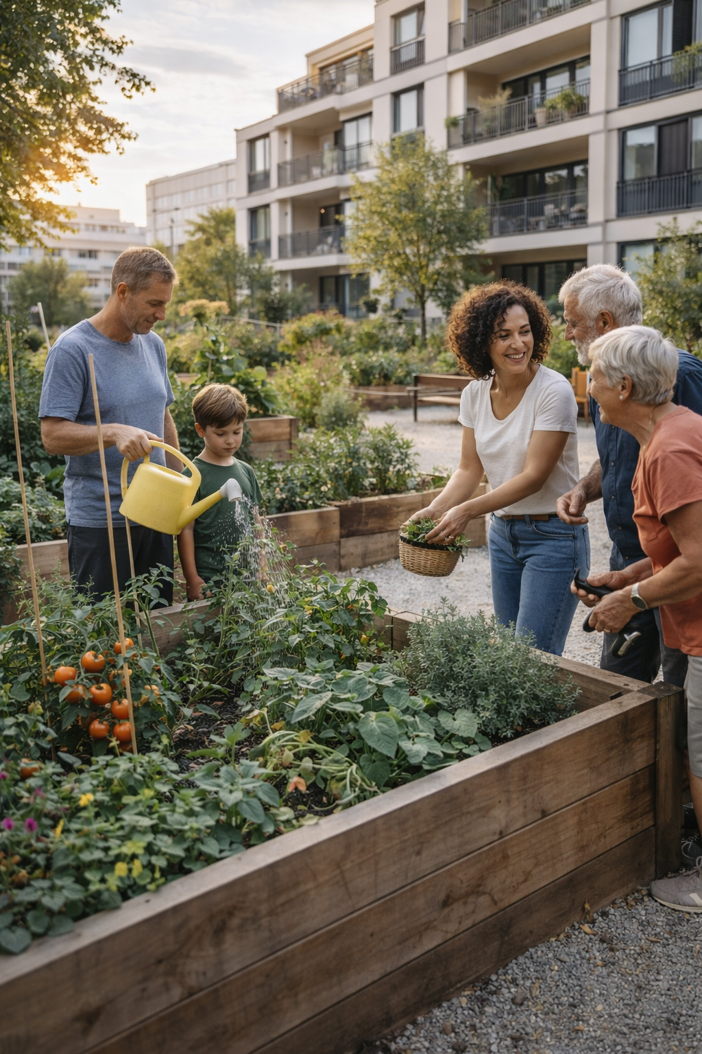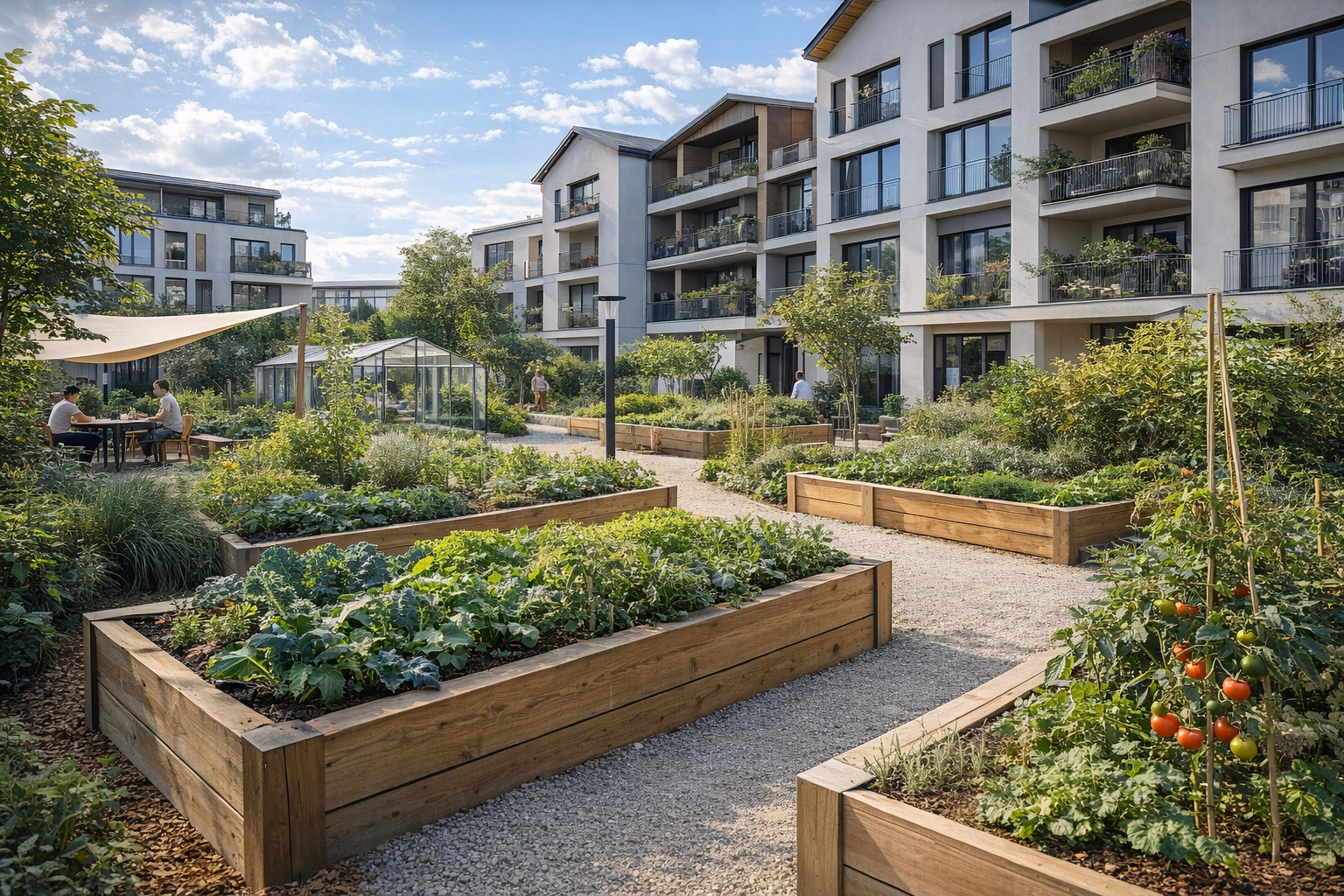 De nombreuses copropriétés disposent d’espaces extérieurs peu valorisés ou purement décoratifs : pelouses peu utilisées, pieds d’immeubles minéraux, jardins difficiles à entretenir ou espaces verts standardisés.